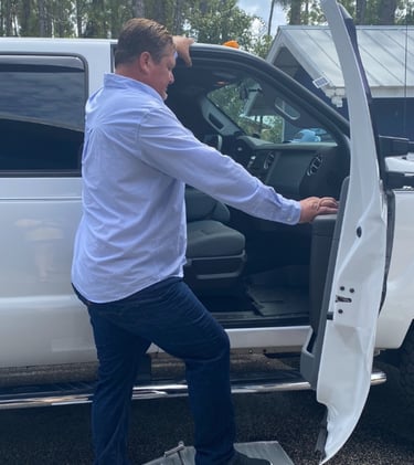 One day, he noticed his mother was having difficulty getting into my truck.